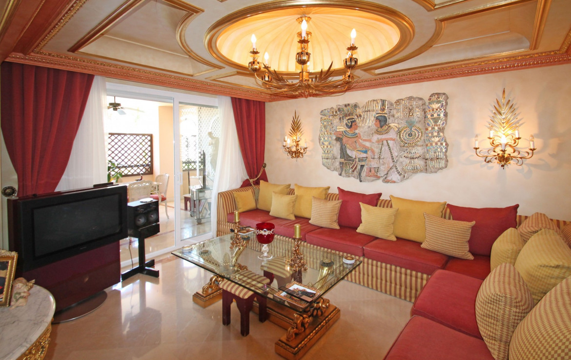 WEST FACING • MARBELLA GOLDEN MILE • Tucked away amidst luxury dwellings in the sought after area of Nagueles, above Marbella’s Golden Mile, within a 5-minute drive to the beach and all amenities, one finds this luxurious and massive apartment. Two apartments have been joined together to create this spectacular and unique property with large West facing covered terraces. The community offers well-maintained gardens and a large swimming pool. The second floor apartment comprises of: elegant entrance hall, very large L shaped living and dining room which leads to the covered West facing terrace. Enormous master suite with dressing area and its own covered terrace overlooking the swimming pool towards the sea, large guest en suite bedroom also with access to the covered terrace, a further guest bedroom with en suite bathroom and lovely sea views, huge and bright fully fitted kitchen with adjoining utility room, and a guest toilet. Three car parking spaces and three store rooms are included.